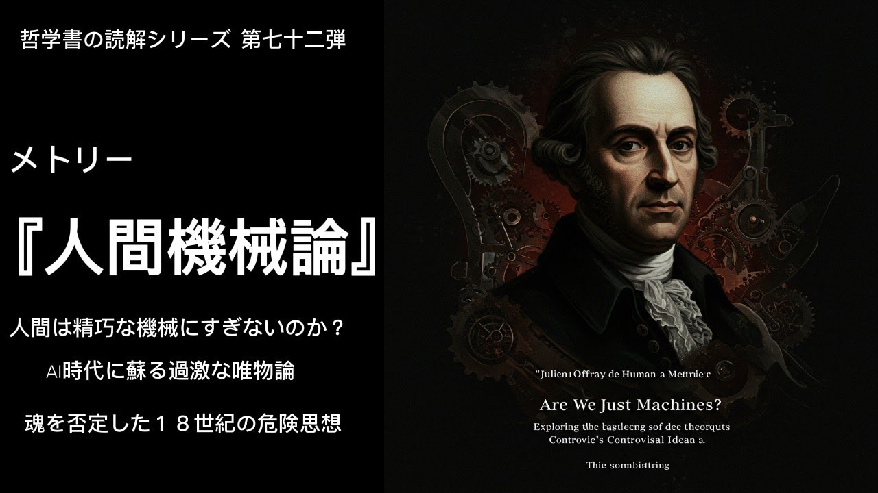 今回も哲学書の解説シリーズです。今回は、ジュリアン・オフレ・ド・ラ・メトリーの名著『人間機械論』を取り上げます。この著作は、18世紀の唯物論的思想で、人間を精巧な機械と見なすことで、思考や感情、行動を物理現象として説明します。彼は、心と身体の一元性を主張し、自由意志や魂の存在を否定しました。この理論は、現代の脳科学やAI研究に影響を与え、私たちの自己理解に挑戦を投げかけています。